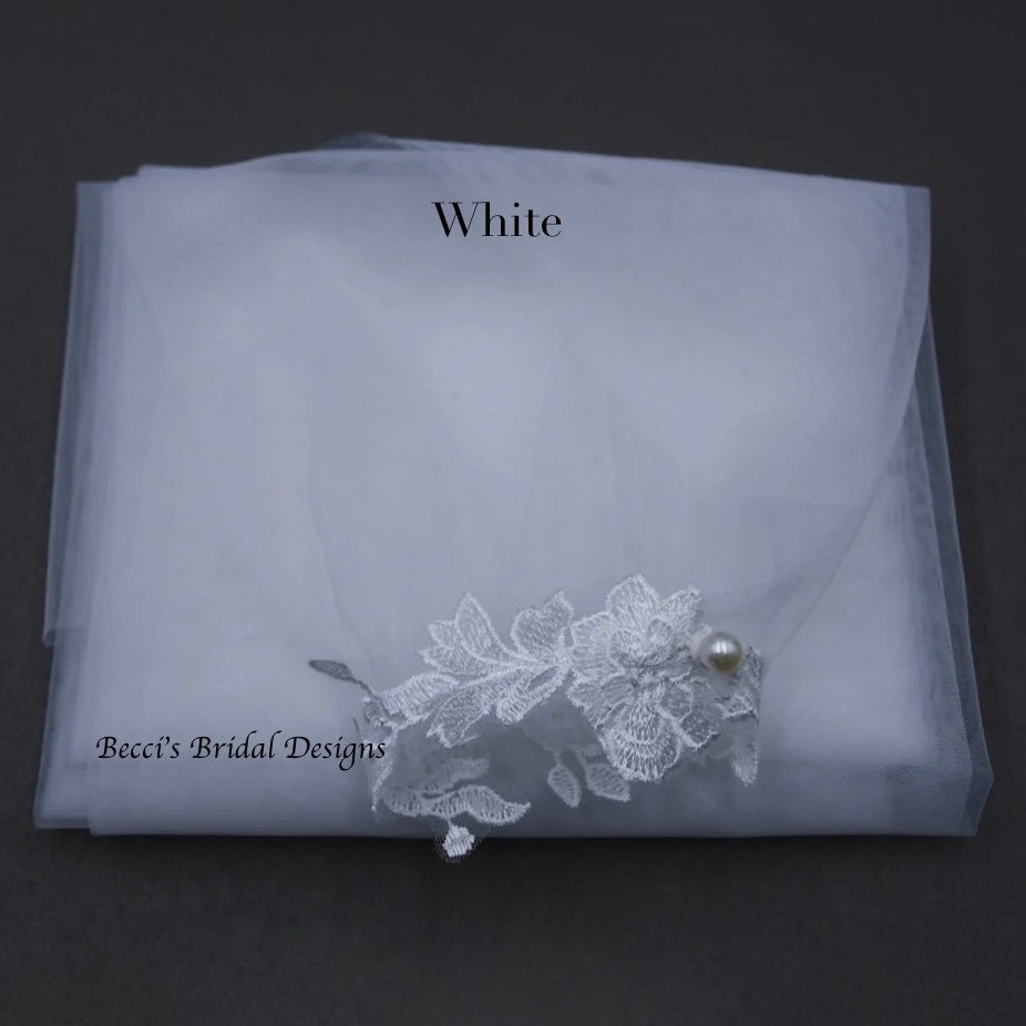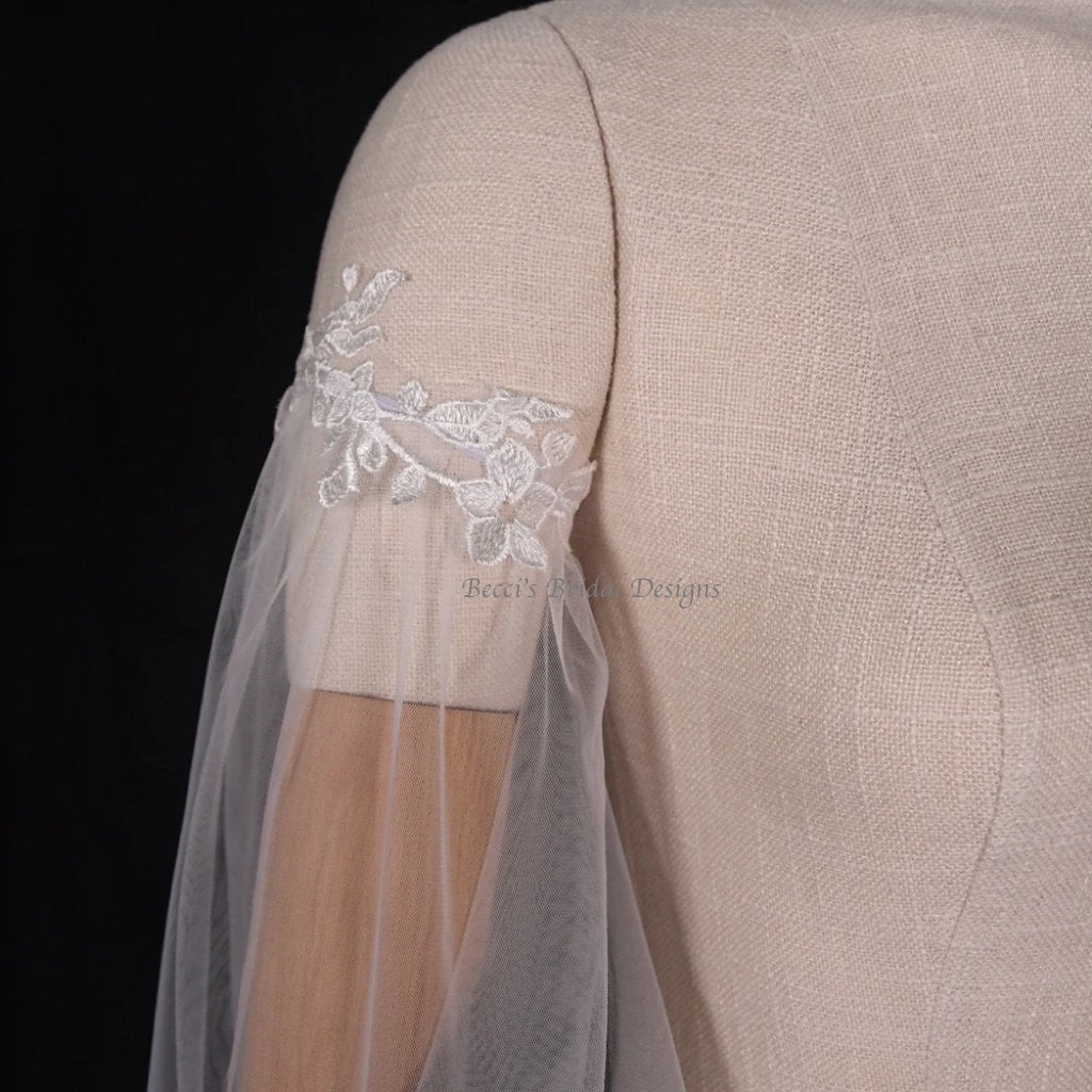 With its delicate lace bridal wings style and soft tulle fabric, this bridal veil sleeve set offers an innovative strapless wedding accessory that transforms your look effortlessly. The two piece wedding cape design allows you to customize your style by wearing the detachable dress sleeves separately or together as a cohesive bridal cape veil. Tested by numerous brides for comfort and style, this handmade bridal cape guarantees satisfaction on your special day.