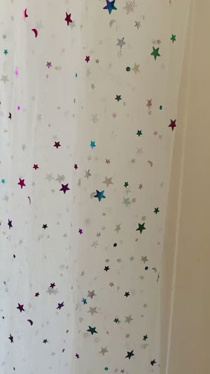 Celestial Wedding Veil - White & Multicoloured Stars with comb 75cm  WAIST LENGTH