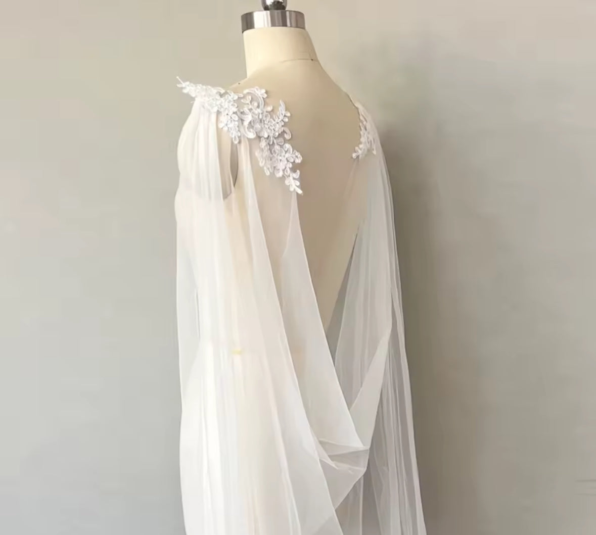 • Functions as a long bridal cape or bridal cloak, perfect for both indoor and outdoor weddings