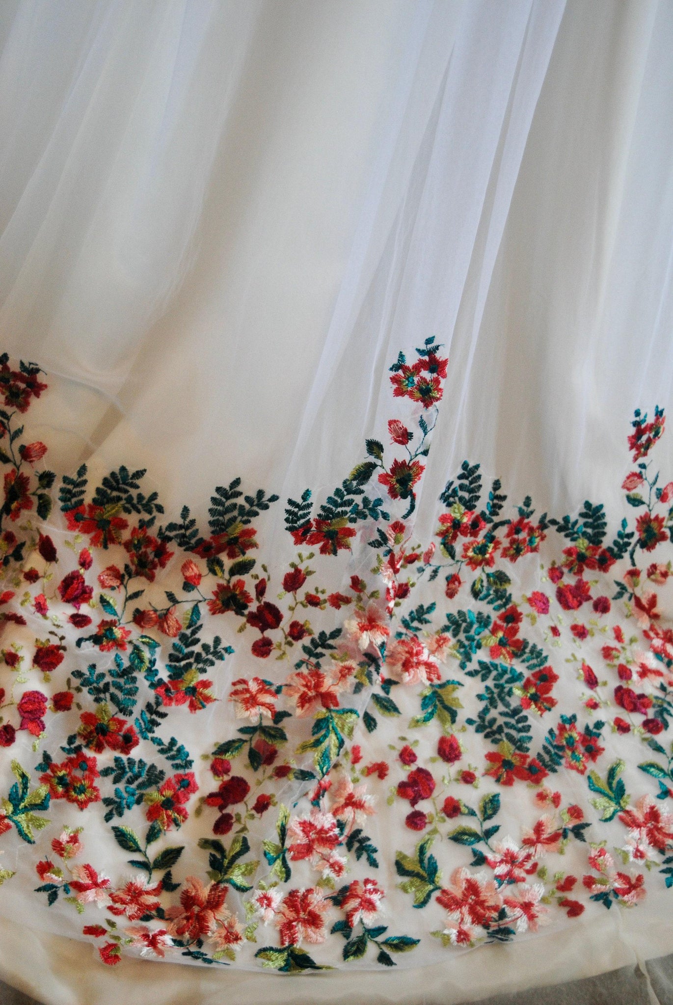 • Unique floral design with detailed rose embroidery for a boho flower veil look