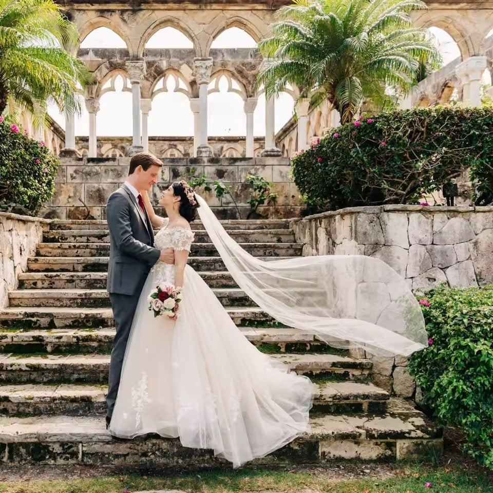 • Color choices: white wedding veil or ivory wedding veil → complements various gown shades perfectly