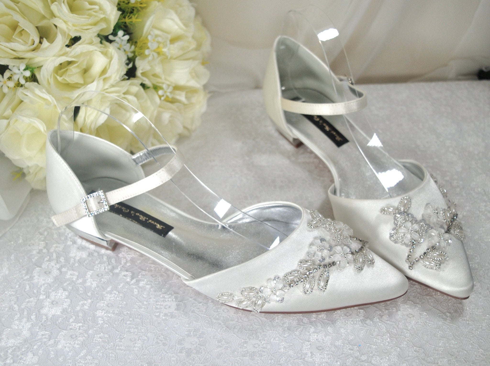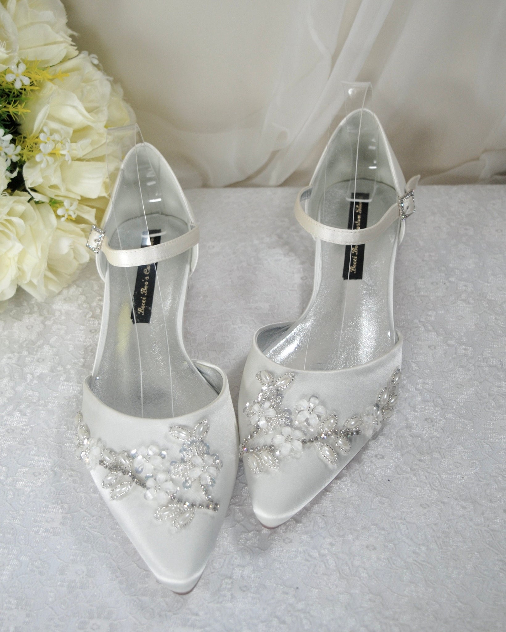 Bridal Satin Flats – Hand Beaded Floral Wedding Flat Shoes With Cushioned Insoles UK9/US11