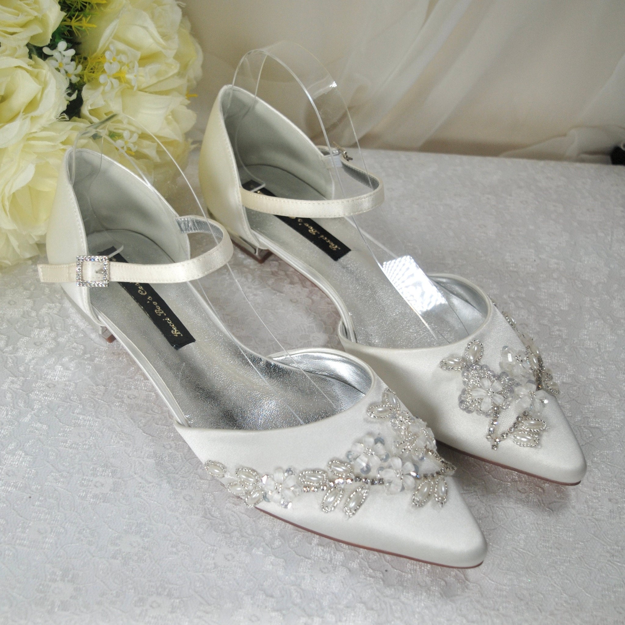 These ivory satin bridal shoes are handmade wedding footwear designed to support you through every moment of your special day. The flat heel height reduces foot fatigue, while gel heel and toe inserts add extra cushioning for prolonged wear. Packaged in eco-friendly luxury shoe boxes and double boxed for safe delivery, these hand beaded shoes come with tracked delivery for peace of mind. Whether you're a bride, bridesmaid, mother of the bride, or attending a special occasion, these comfortable bridal flats offer a beautiful alternative to traditional heels.