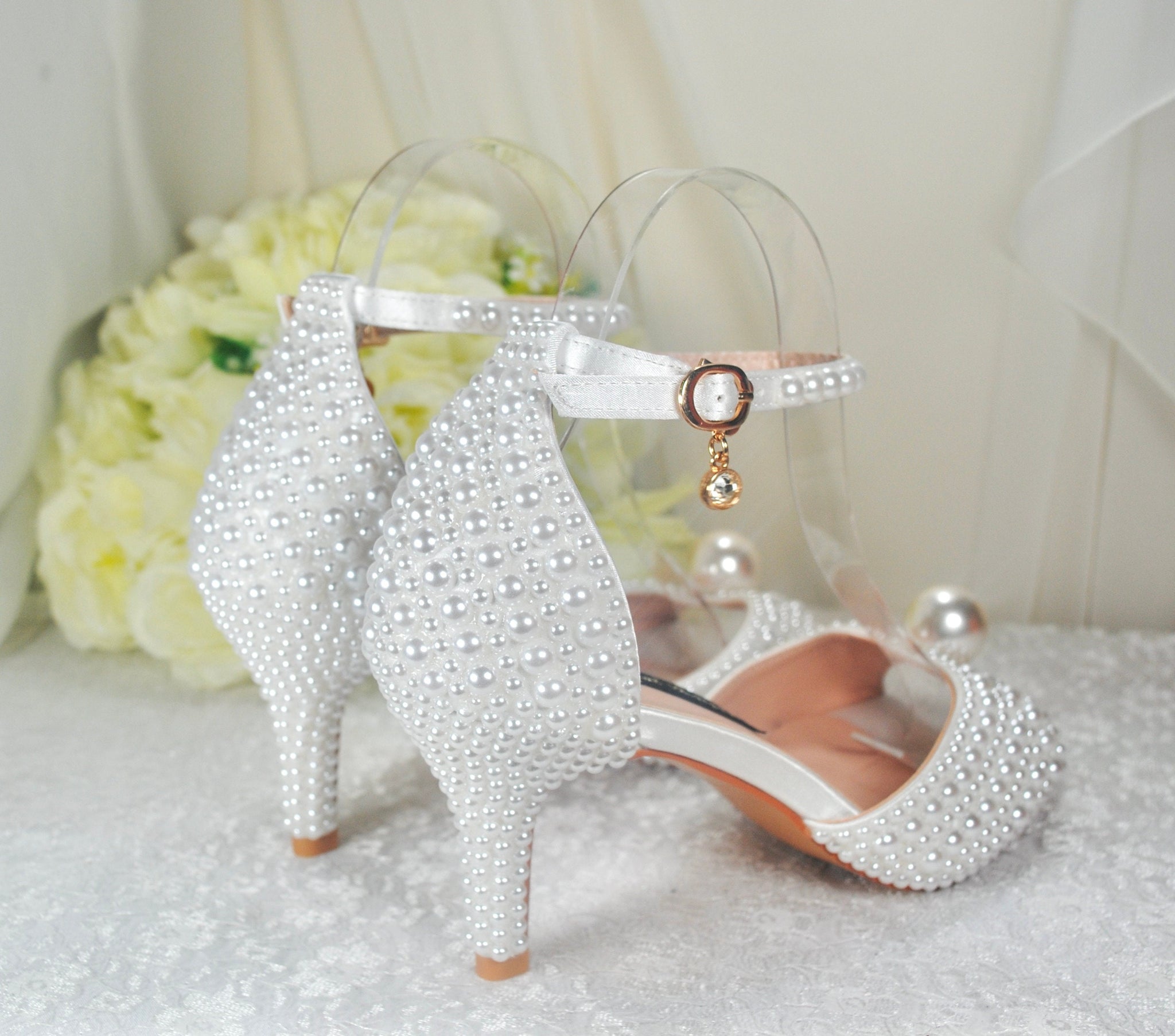 • Hand-placed faux pearls creating exquisite bridal shoes with pearls embellishment on the toe area