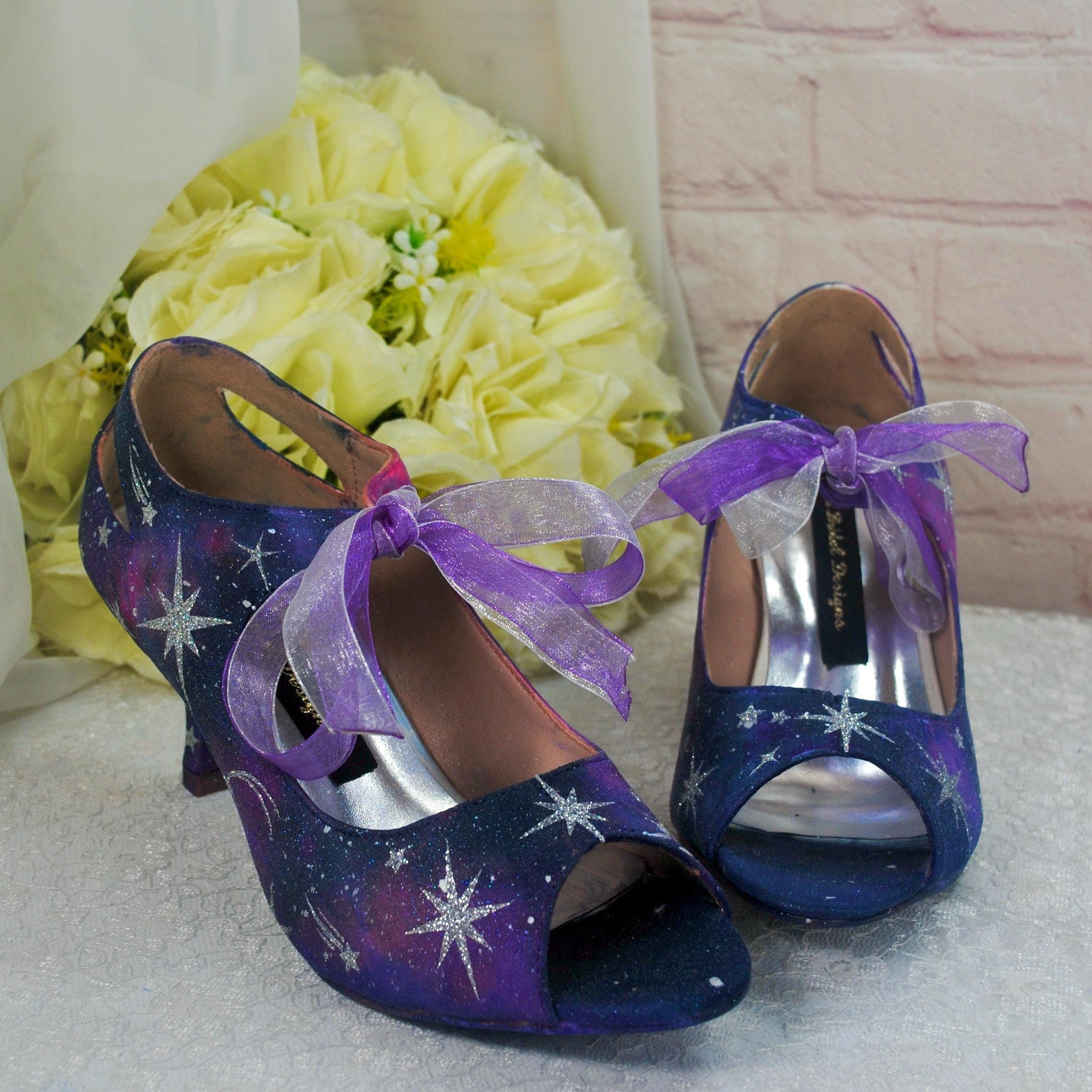 Celestial Wedding Shoes, Beautifully Hand Painted Shoes with Silver Glitter Stars and a shimmer finish, Custom Wedding Shoes, Satin Bridal Shoes, Shoes for Bride, Galaxy Star Shoes, Bridesmaid Shoes