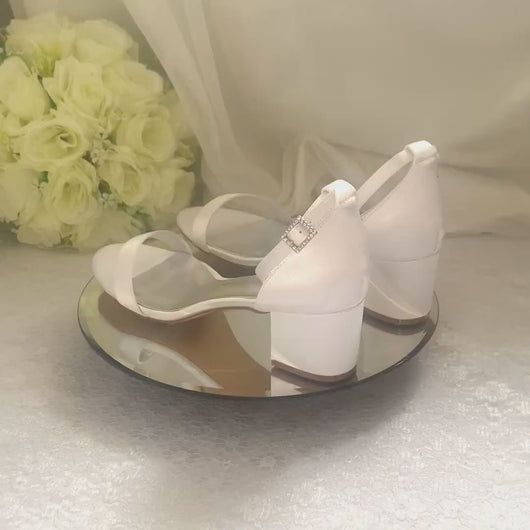 Bridal block heel sandals designed for comfort and style. Featuring padded sole bridal shoes and a low heel sandals design, these ankle strap heels provide the perfect blend of elegance and support for your special occasion.