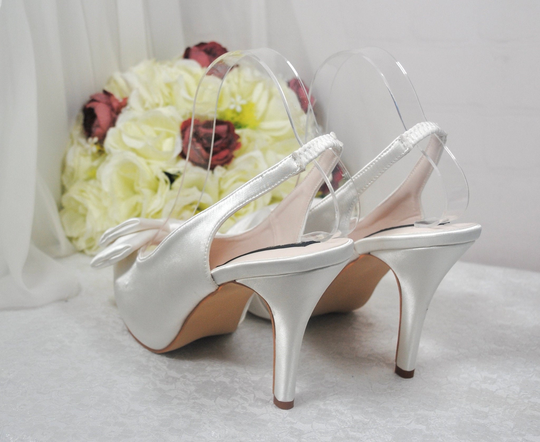 These ivory satin slingback heels have been tested for comfort and durability, ensuring they meet the high standards expected from premium bridal footwear. Whether you are walking down the aisle or attending an engagement party or evening event, these bridal slingback heels provide the perfect balance of style and support. Choose these satin bow wedding shoes to complete your wedding ensemble with grace and confidence.