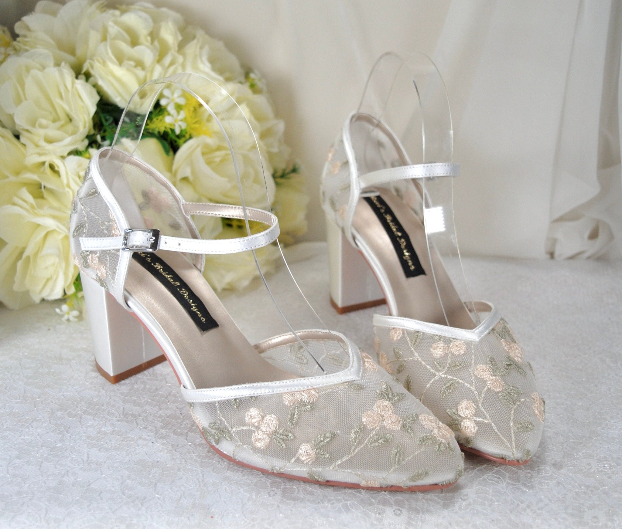 Bridal block heel shoes designed for comfort and elegance, these Floral Embroidered Ivory Wedding Heels offer the perfect blend of style and support for your special day. Handmade satin shoes with cushioned insoles ensure you stay comfortable from the ceremony through to the last dance. The 8cm block heel wedding shoes provide stability without sacrificing grace, making these bridal sandals ideal for all-day wear.