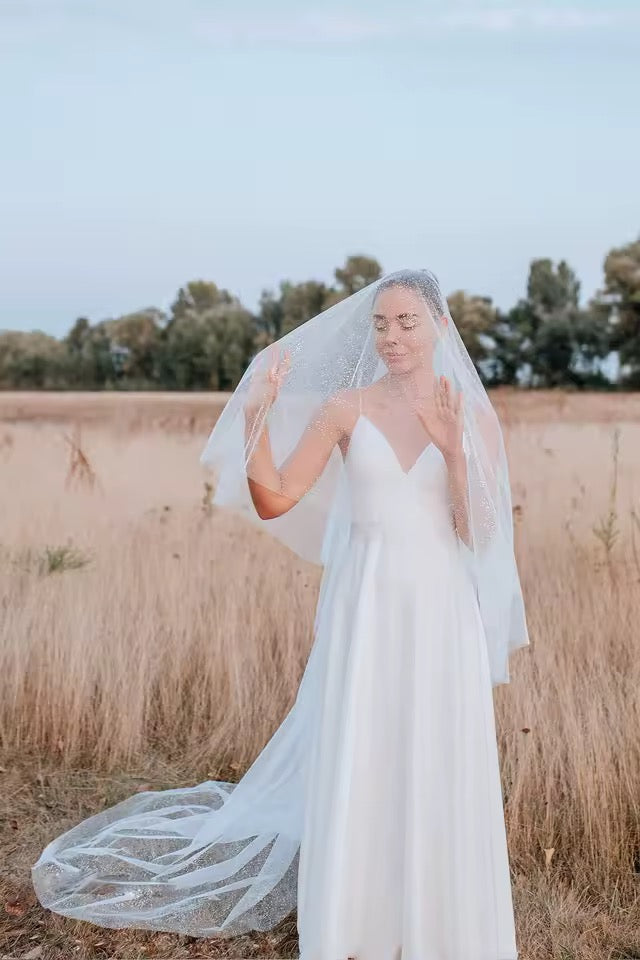 • Handmade soft tulle veil with glitter finish