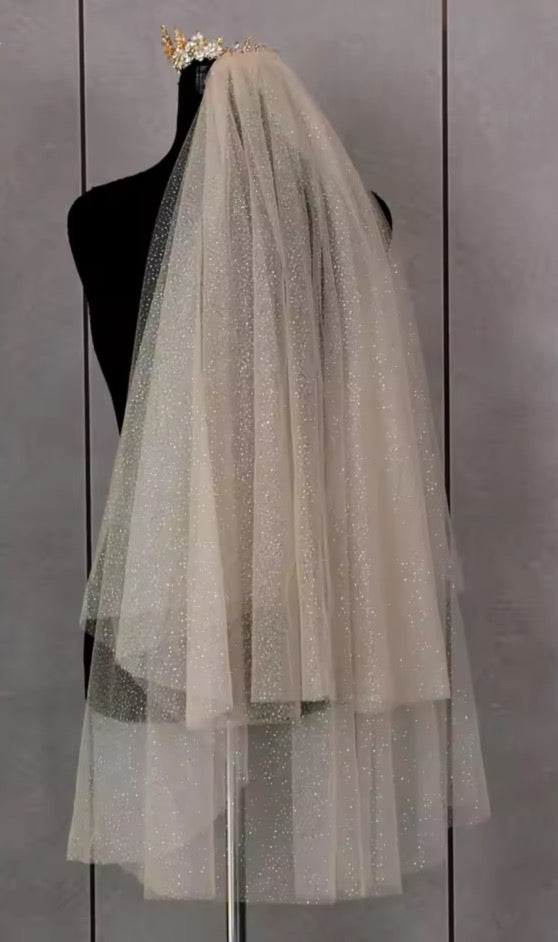 2-Tier Sparkling Glitter Bridal Veils - 100cm to 300cm - Ivory, White or Champagne - with Comb & Blusher