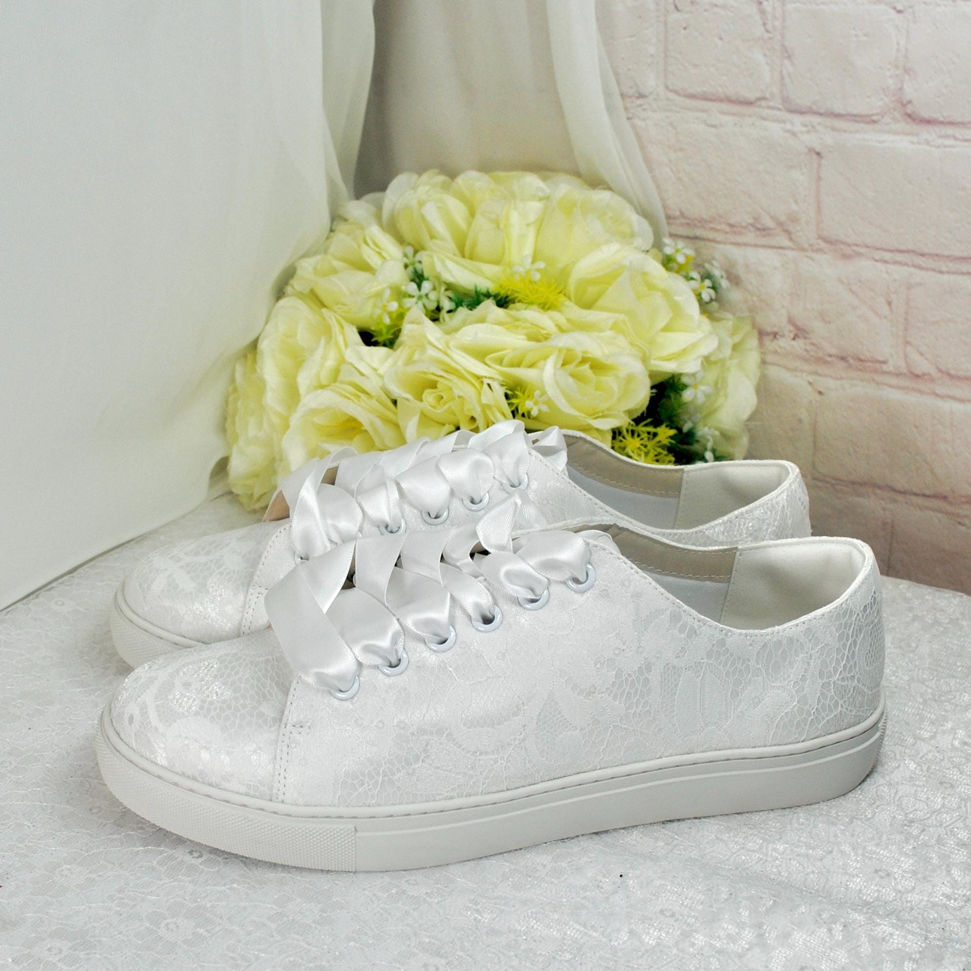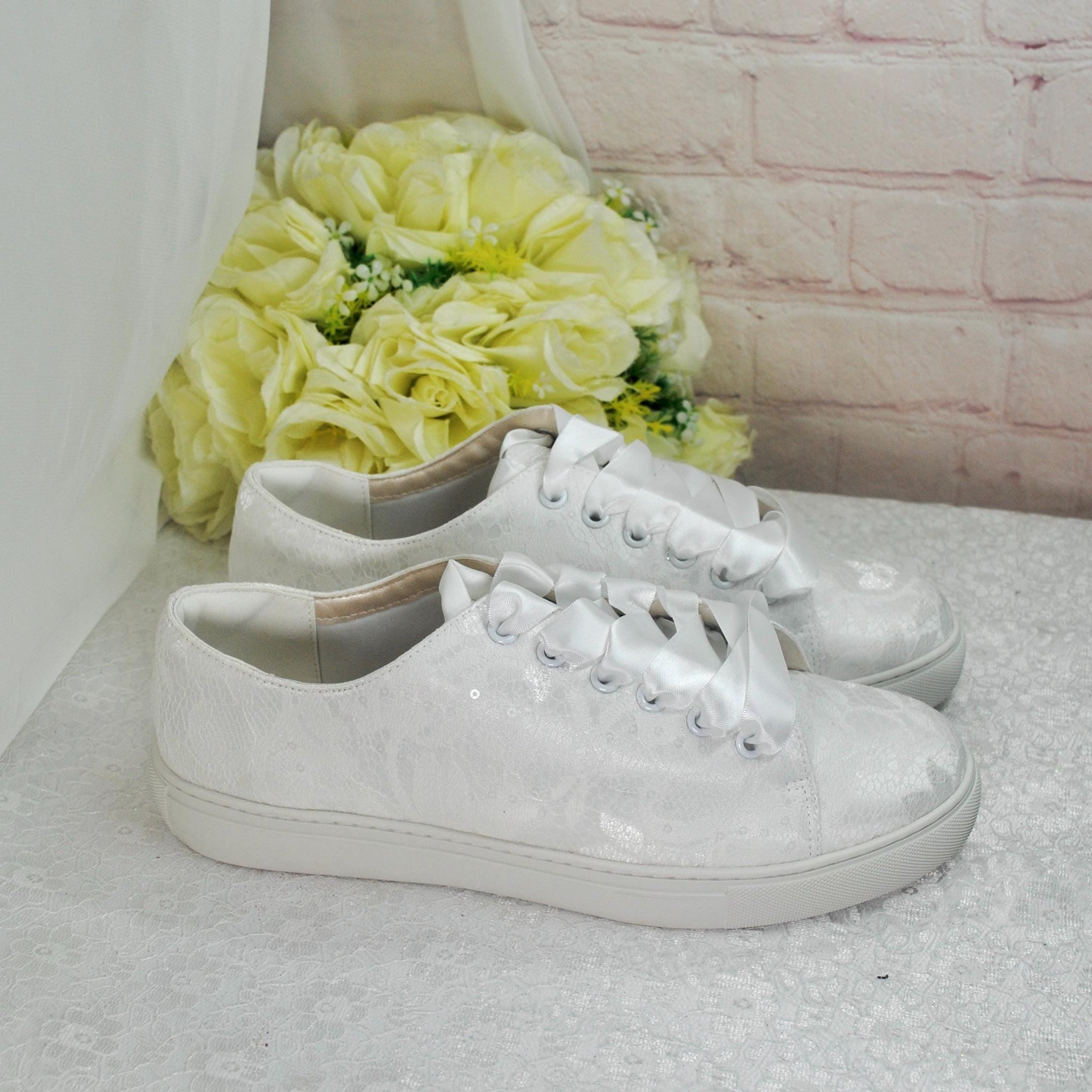 Upgrade your wedding footwear with these lace wedding trainers that blend function and fashion seamlessly. The flat sole reduces pressure on feet, while the lace finish adds a romantic touch that enhances your bridal outfit. Packaged thoughtfully in an eco friendly shoe box and shipped via tracked delivery, these trainers arrive ready to wear on your big day.