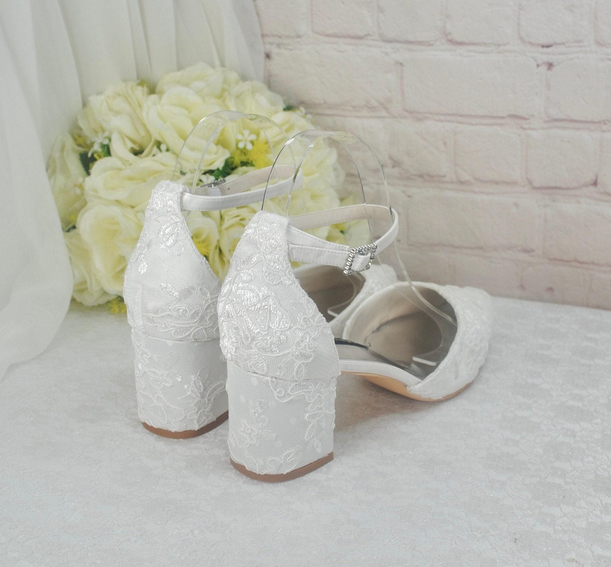 These Ivory wedding heels have been crafted to high standards, offering durability alongside elegance. Bridesmaid lace shoes are also available in matching styles, allowing the entire bridal party to coordinate effortlessly. Our commitment to quality is backed by numerous positive reviews praising the comfort and fit of these custom bridal footwear options.