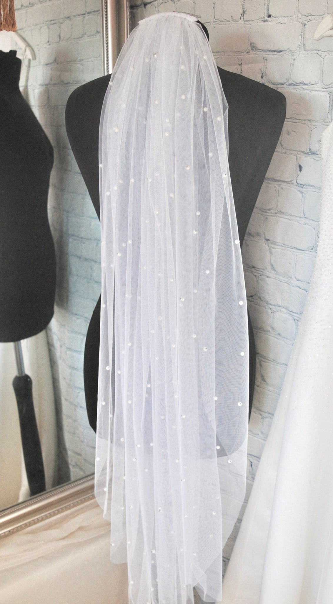 This long pearl veil has been crafted to meet the highest standards of quality and design. Becci's Bridal Designs offers a trusted product backed by positive customer reviews praising its craftsmanship and beauty. Whether you desire an elegant wedding accessory for a classic look or a statement piece for a grand entrance, this pearl beaded veil delivers sophistication and charm.