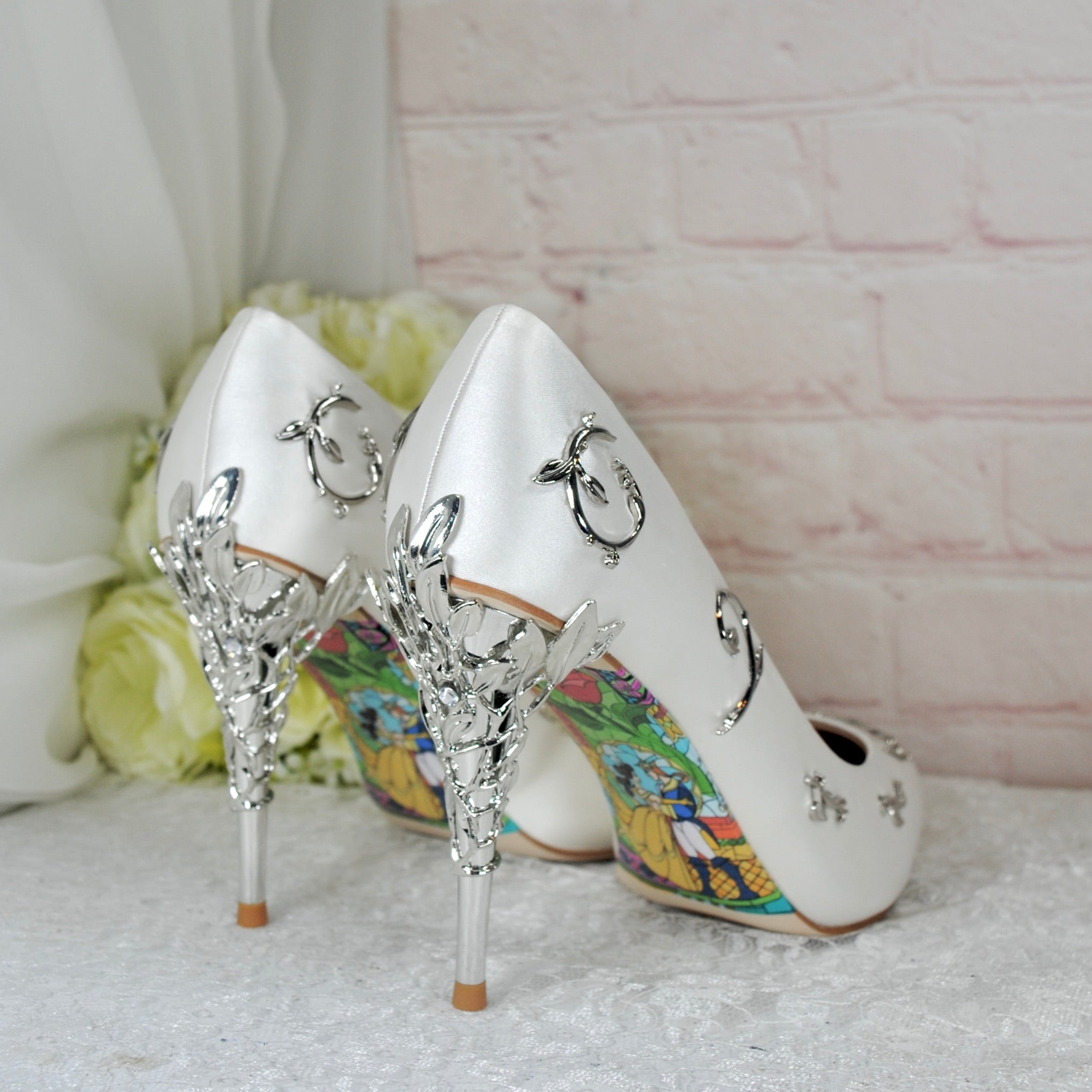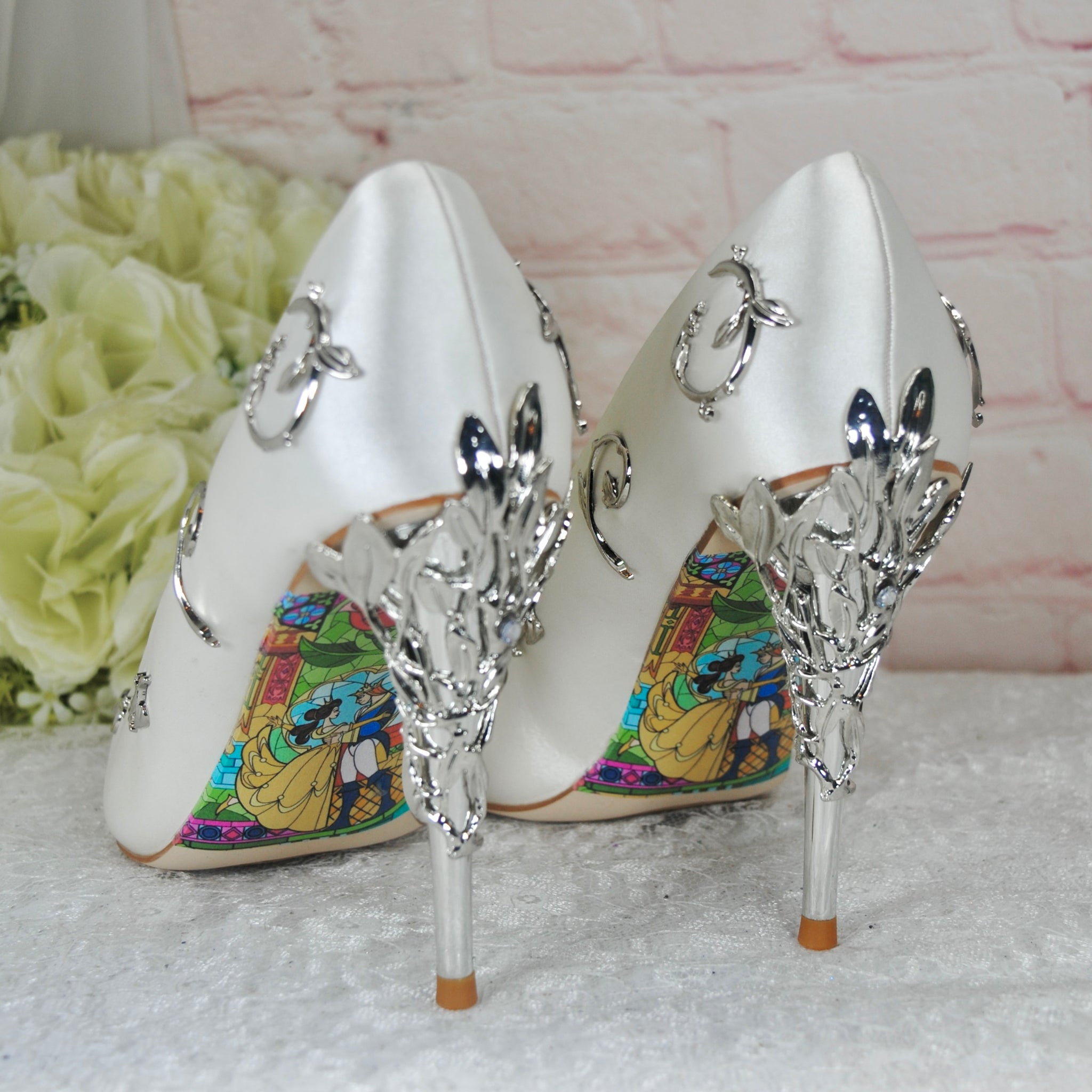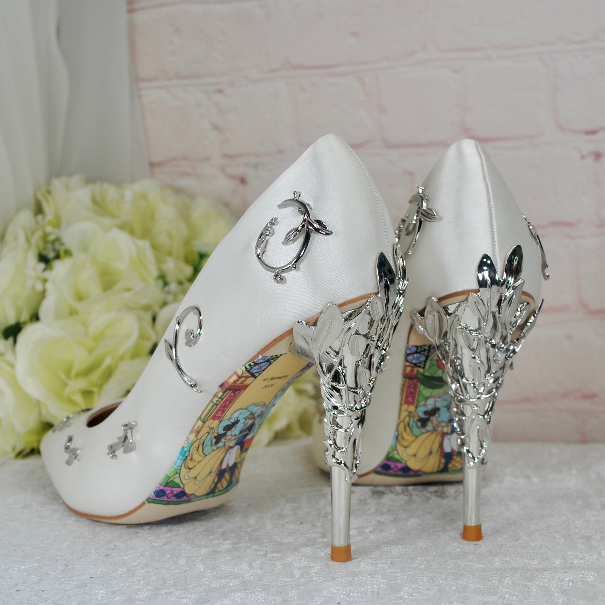 Disney Wedding Shoes Beauty and the Beast with Filigree Metal Leaf Heels and Vines. Becci Boo's Custom Shoes Handmade Designer Pumps