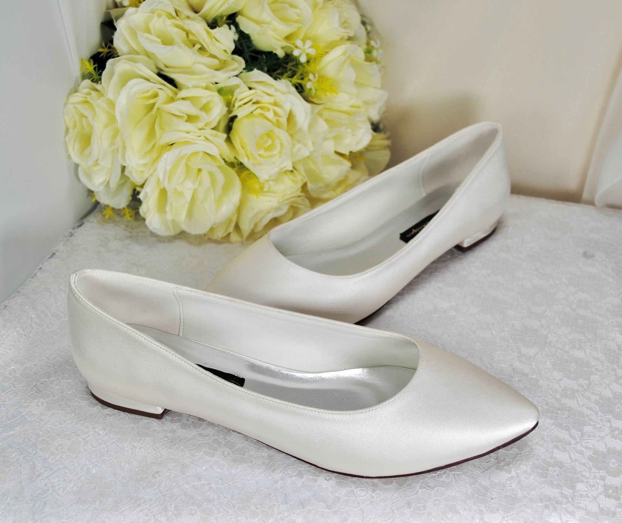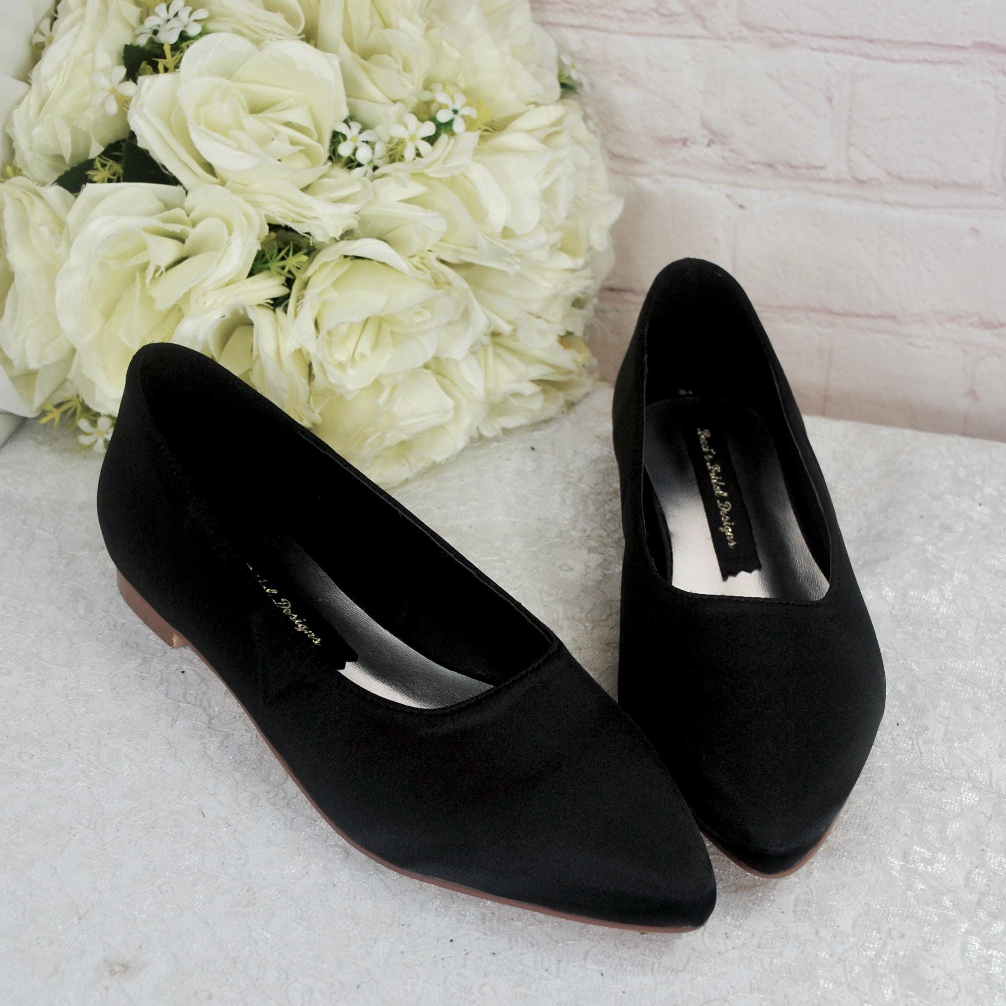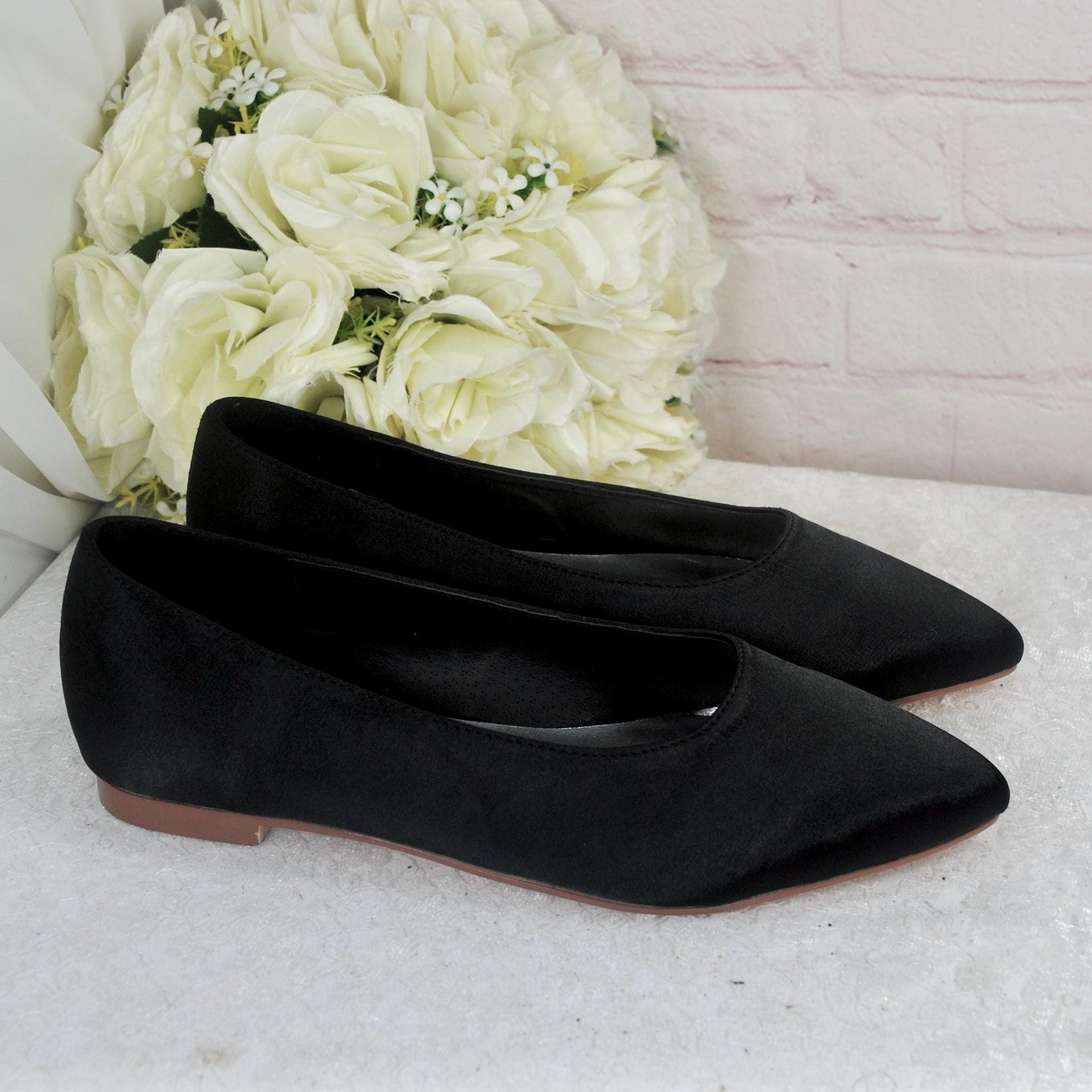 Black Satin Flat Shoes: Pointed Toe Ballet Flats: Ivory Satin Bridal Flats: Pointed Toe Wedding Shoes