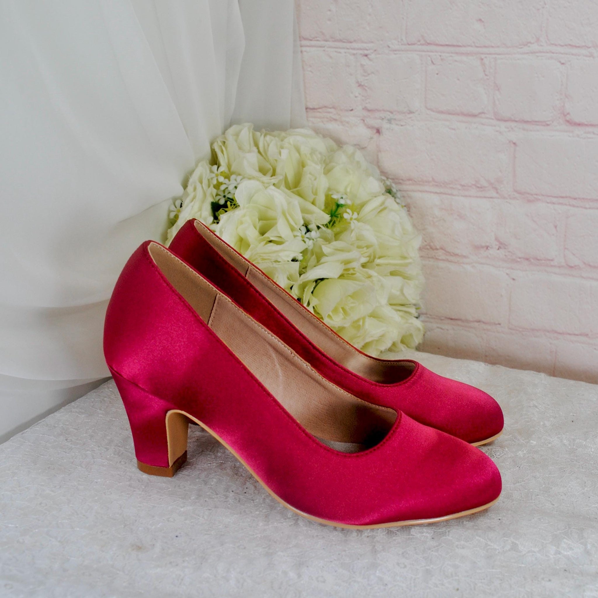 An Elegant Bridal Shoe, these Block Heel Shoes are available in a range of colours.