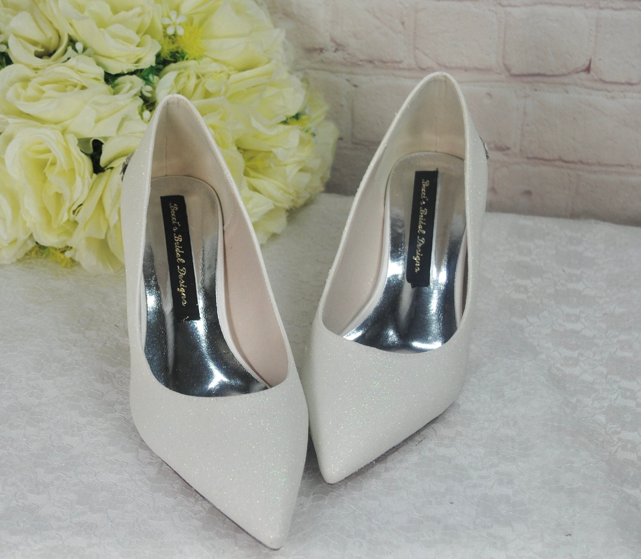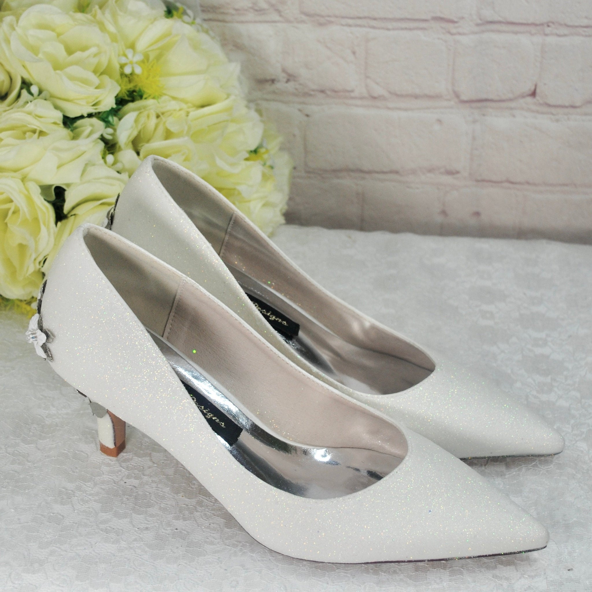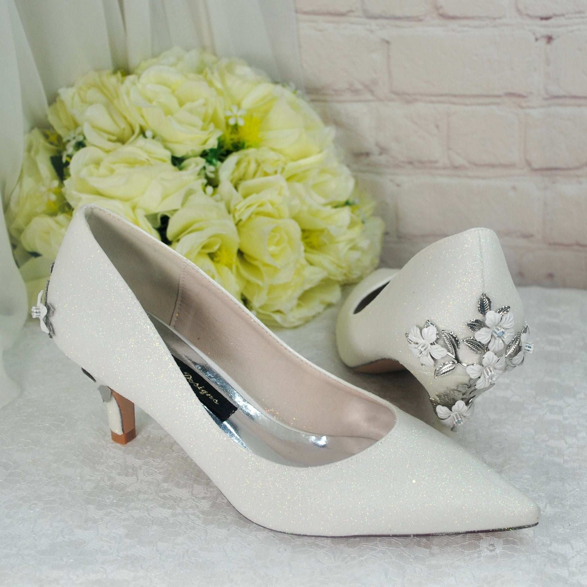 Simply Beautiful 'Cherry Blossom' Ivory Shimmer Embellished Bridal Wedding Shoes