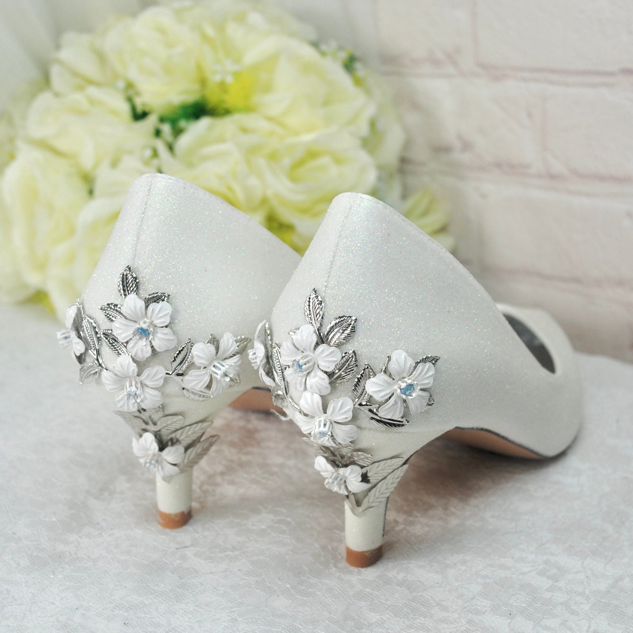 • Handcrafted Cherry Blossom Details on Heels