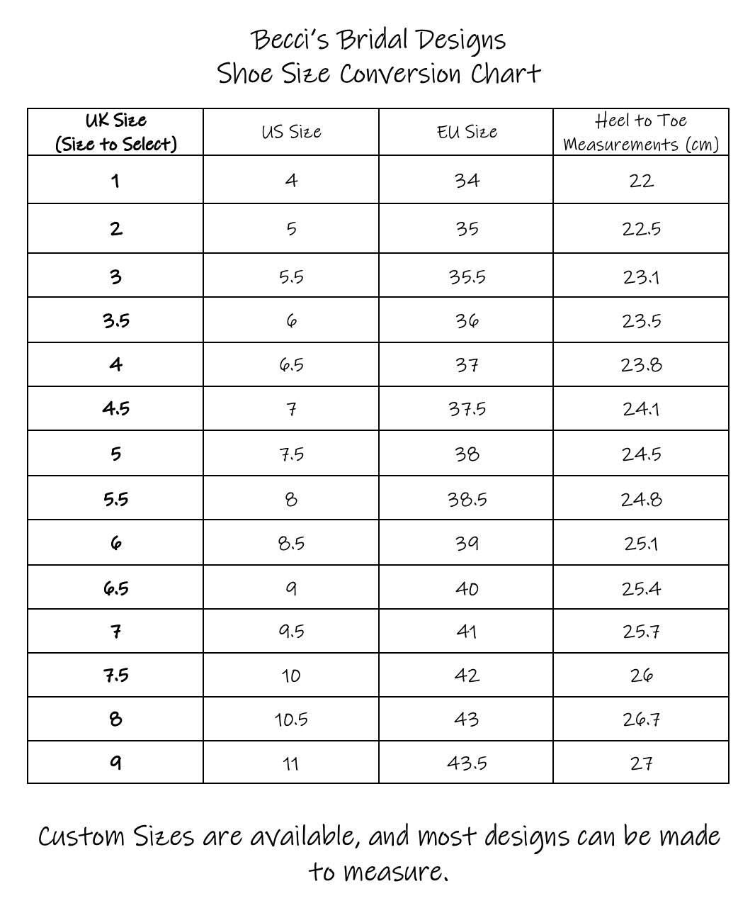 • Shoes can be made to your measurements.