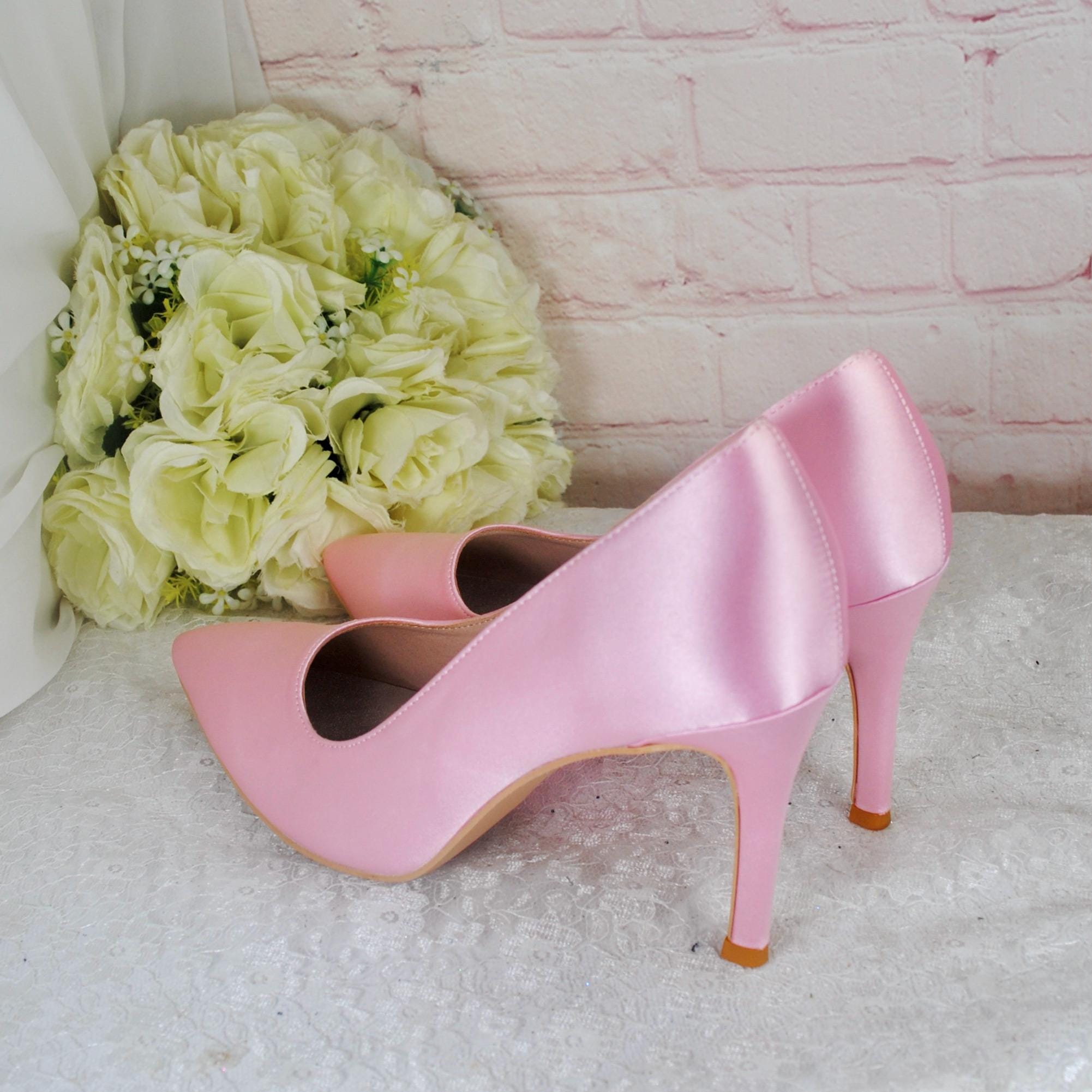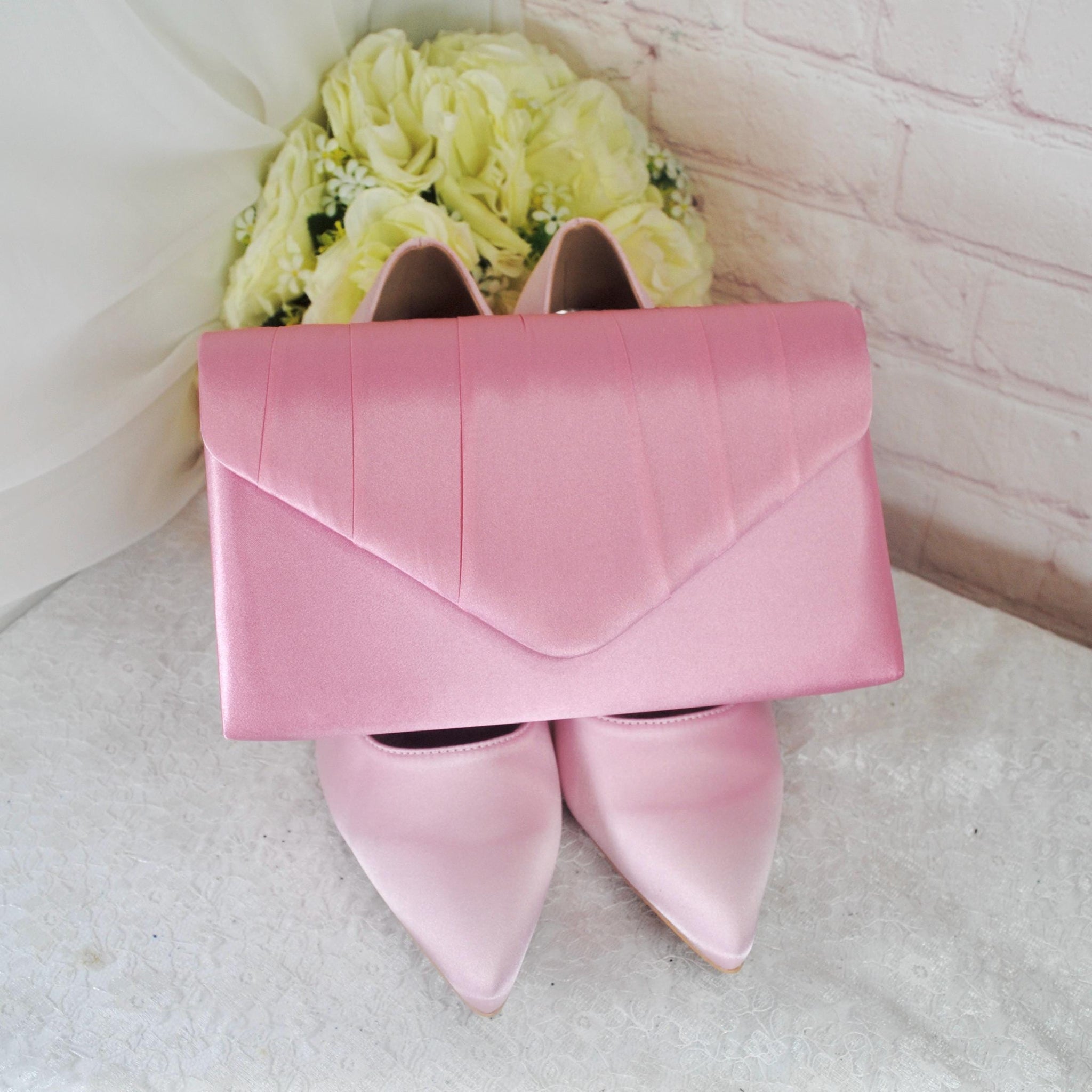 Stunning Pink Satin Heels Clutch Bag Fascinator Hat, Matching Bridal Set Hatinator Purse Shoes for Wedding Guest Mother of the Bride Groom