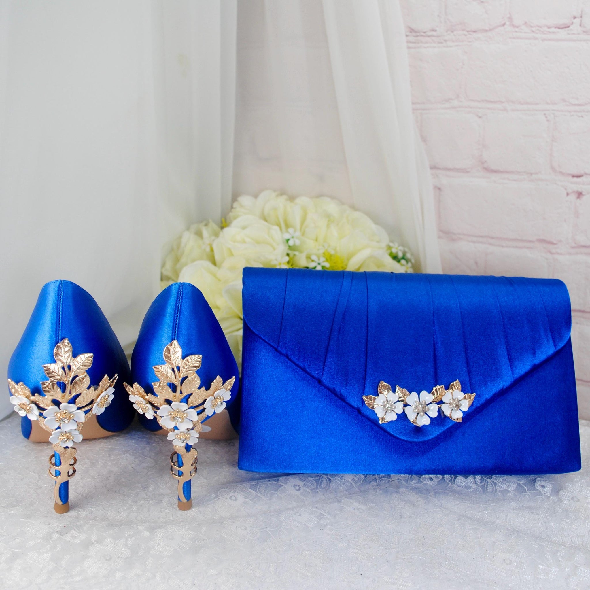 A prefect matching set of High Quality Handmade Satin Shoes, Handbag and Fascinator, ideal for Race Days, Wedding Guests, Prom, Bridal Parties, Mother of the Bride or Groom