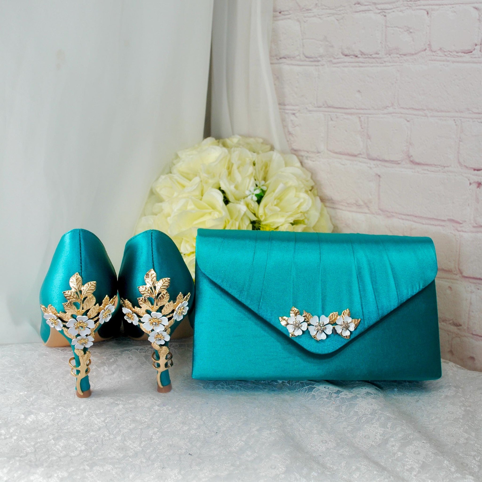 A prefect matching set of High Quality Handmade Satin Shoes, Handbag and Fascinator, ideal for Race Days, Wedding Guests, Prom, Bridal Parties, Mother of the Bride or Groom