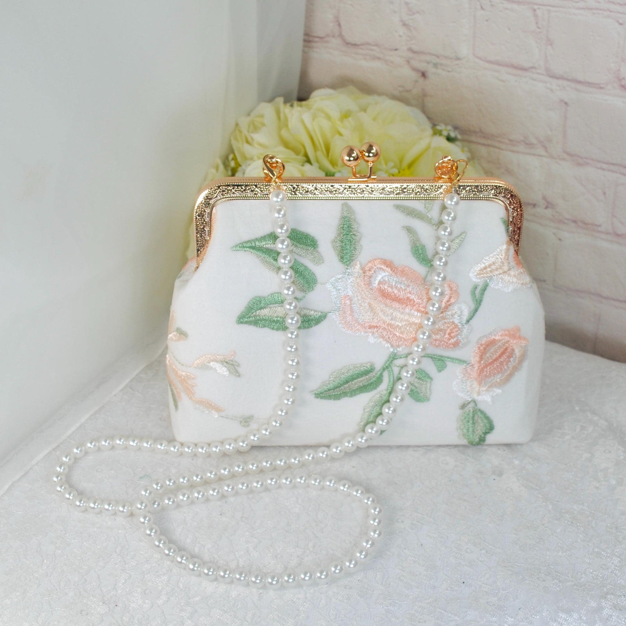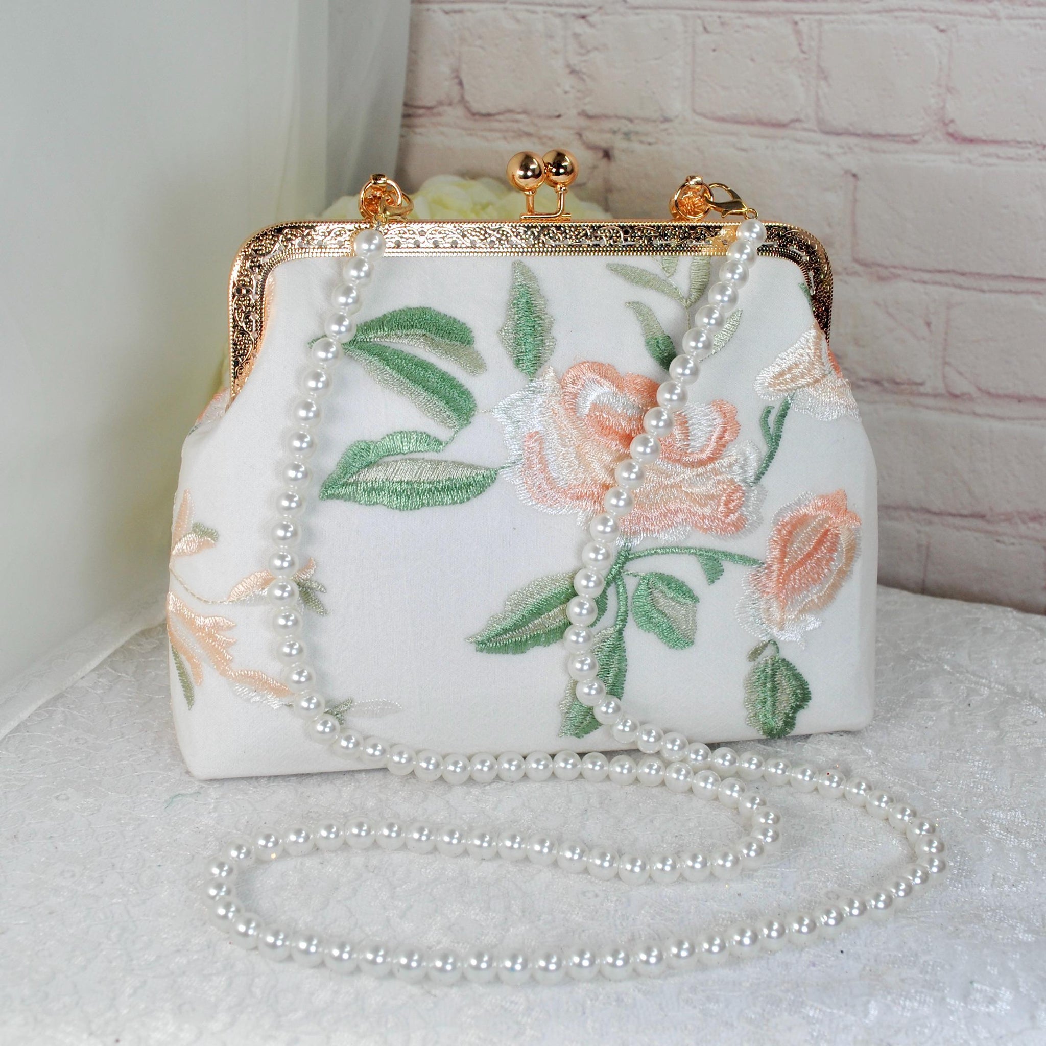 Vintage Wedding Handbag White Lace with Gold Trim Clasp Bag Purse Clutch Stunning High Quality UK Handmade Accessory Wedding Bride